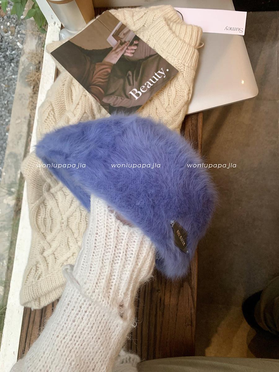 И Уютный Модный Берет из Кроличьего Меха Стильная Зимняя Шапка в Ретро-стиле для Женщин светло-синий