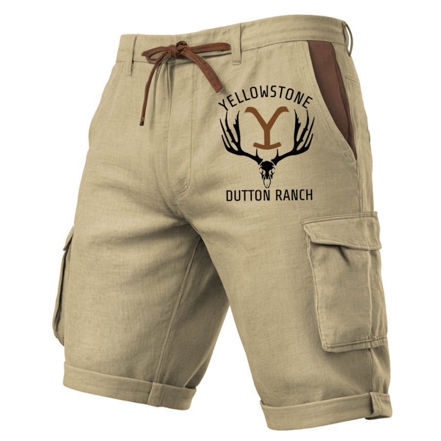 shorts,йеллоустонские мужские хлопковые льняные шорты для улицы в винтажном стиле с несколькими карманами и цветными блоками