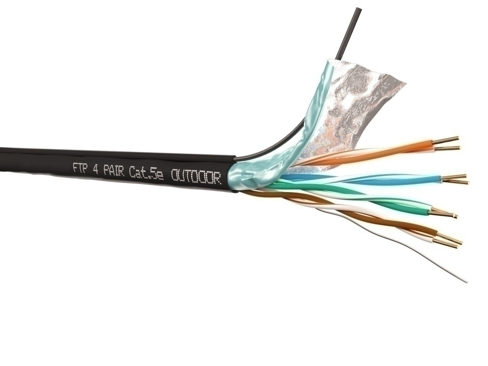 Кабель витая пара FTP4, экранированная, 4 пары, cat.5е, моножила, медный, уличный, ТРОС, 7, Черный