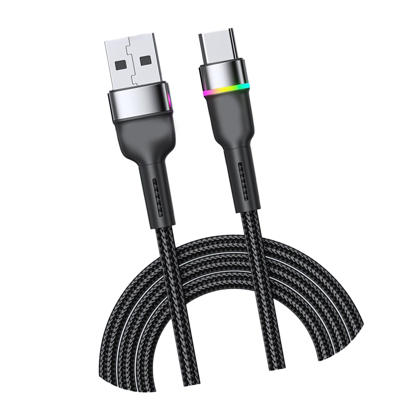 Кабель для быстрой зарядки Алюминиевый сплав USB C Кабель для зарядки и передачи данных для телефона 3A Цветной Свет Черный чёрный