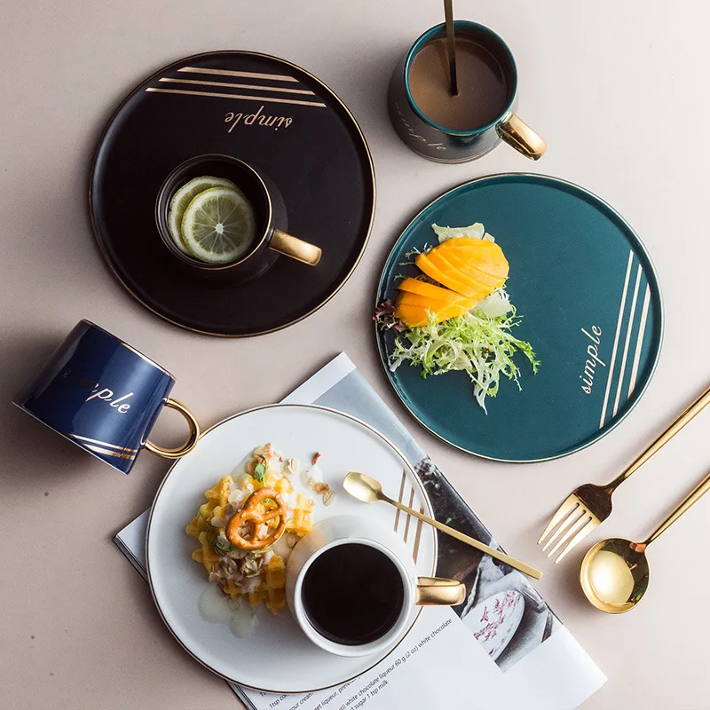 Круглая кофейная чашка и тарелки из Пномпеня, круглая тарелка и кофейная чашка с ложкой