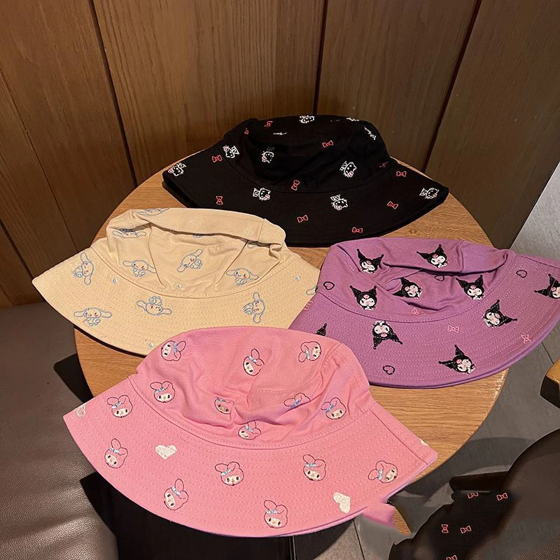 Кавайная Рыбацкая шляпа Sanrio моя мелодия маленькая двойная звезда мультфильм Милая Вышивка летняя уличная шляпа с лицом сто Возьмите солнце