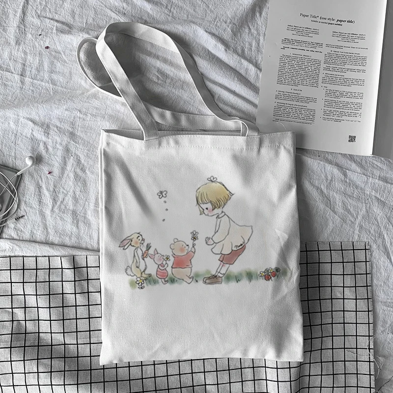 Кавайная забавная Милая Холщовая Сумка для покупок с принтом для девушек, белая Вместительная женская модная сумка для покупок через плечо, сумка-тоут