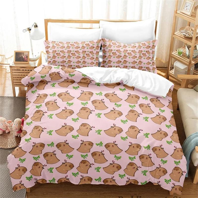 Кавайные Капибары Постельное Белье Односпальный Полуторный Двуспальный Кингсайз Набор Постельного Белья Взрослый Детский Спальня Комплекты Пододеяльников 3D Набор Покрывал EU single(135x200cm)