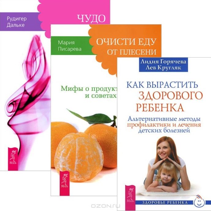 Книга 1..Лидия Горячева и Лев Кругляк - профессиональные врачи, имеющие многолетний практический опыт в терапии детских болезней. В этой книге они делятся информацией, которая поможет вам лучше понимать процессы, происходящие в организме на фоне того или иного заболевания у детей с первых дней жизни вплоть до подросткового возраста. ..Предложенные авторами рекомендации позволят своевременно принять верное решение для улучшения самочувствия и выздоровления ребенка. Вы также узнаете о том, как реагировать при несчастном случае и травмах, есть ли смысл проводить вакцинацию, как помочь ребенку с синдромом дефицита внимания и гиперактивности. ..Практическую ценность этой книги оценят мамы, папы, бабушки и дедушки, а также медицинские работники, педиатры, воспитатели, педагоги и психологи. ..Книга 2..В каждой стране в области диетологии работают тысячи специалистов и проводится огромное количество исследований. Мы все хотим быть красивыми и здоровыми, но даже не подозреваем, какая игра идет вокруг этих простых незамысловатых желаний. Результаты титанической работы выдаются на-гора в виде рекомендаций - что и когда мы должны употреблять в пищу, какой образ жизни должны вести. Но, к великому сожалению, несмотря на все гигантские усилия специалистов, человечество не становится здоровее. А все это потому, что нет другой такой наполненной ложью и мифами области, как сфера питания, - считает Мария Писарева. ..- Что из себя представляет калория, и почему подсчет калорий является пустым занятием? ..- Нужен ли контроль уровня холестерина? ..- По какому принципу жиры делят на вредные и полезные, и что происходит в организме во время низкожировой диеты? ..- В чем причина избыточного веса и что делать с лишними килограммами? ..- Чем опасна витаминомания? ..Прочитав книгу, вы получите ответы на эти и многие другие вопросы. По мнению Марии Писаревой, для того, чтобы сохранить здоровье и сбалансированный вес, нам необходимы лишь научно обоснованные знания о продуктах питания и здравый смысл. ..Книга 3..Книга "Чудо воображения" посвящена управляемой медитации - удивительно мудрому и в то же время простому способу исцеления тела, разума и духа. С помощью теоретических пояснений и практических упражнений известный доктор медицины, психотерапевт и признанный специалист в области натуротерапии Рудигер Дальке показывает нам, как сделать возможным удивительное путешествие "внутрь себя". Его уникальные медитации способствуют глубокому эмоциональному и физическому расслаблению, состоянию абсолютного спокойствия, умиротворенности. Постепенно исчезают психологические барьеры и беспокойство. Эффективны данные медитации и для лечения многих физических недугов...Автор убежден: освоить управляемую медитацию может абсолютно любой человек, независимо от его возраста и социального стат...
