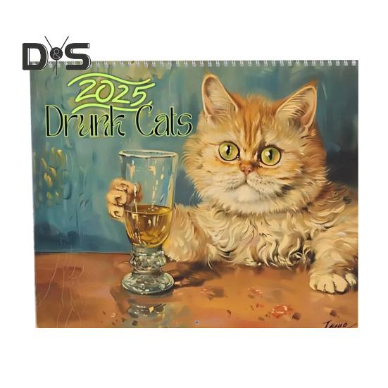 Календарь на стену с кошками 2025 года, ежемесячный календарь с пьяными кошками, стиль масляной живописи, забавные иллюстрации кошек, календарь в подарок любителям кошек Cat