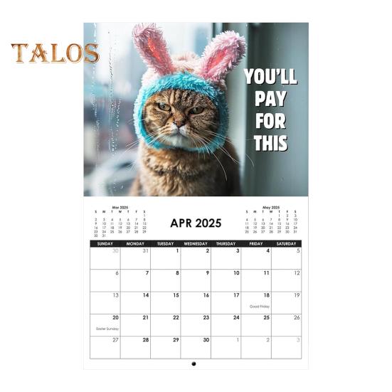 Календарь на тему кошек 2025 года Забавный настенный календарь с изображением кошек Сердитый котенок Подвесной ежемесячный ежедневник Подарки для любителей кошек Cat