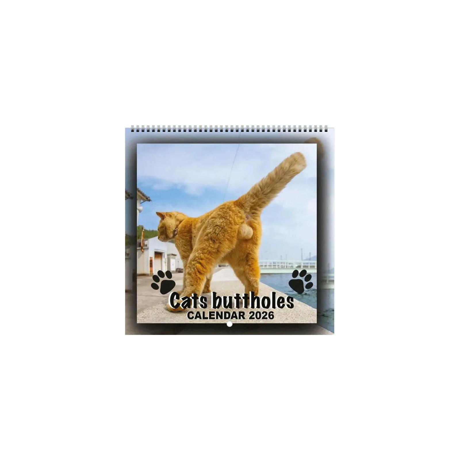 Календарь с кошачьими попами на 2026 год – Смешной настенный календарь с кошачьими попами, 12-месячный юмористический календарь с животными, Оригинальный подарок для любителей кошек One Size