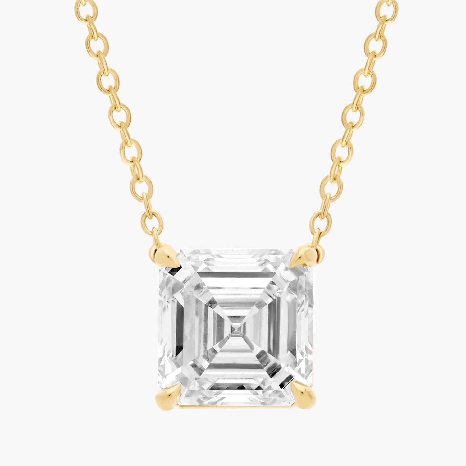Подвеска-солитер с выращенным в лаборатории бриллиантом Asscher Cut из 14-каратного желтого золота (3 карата, двойной цвет - FG / VS2-SI1) Blue Nile