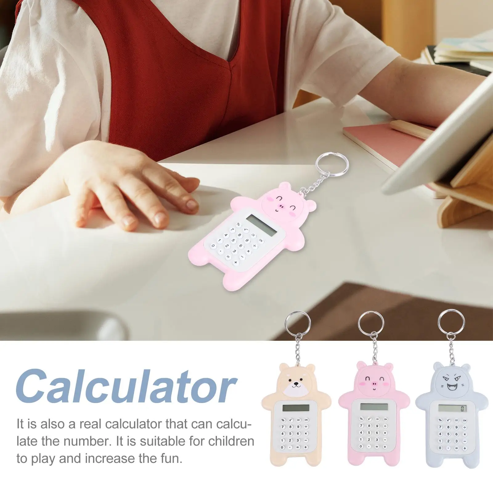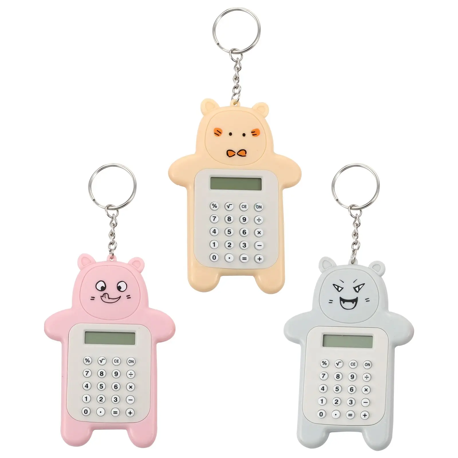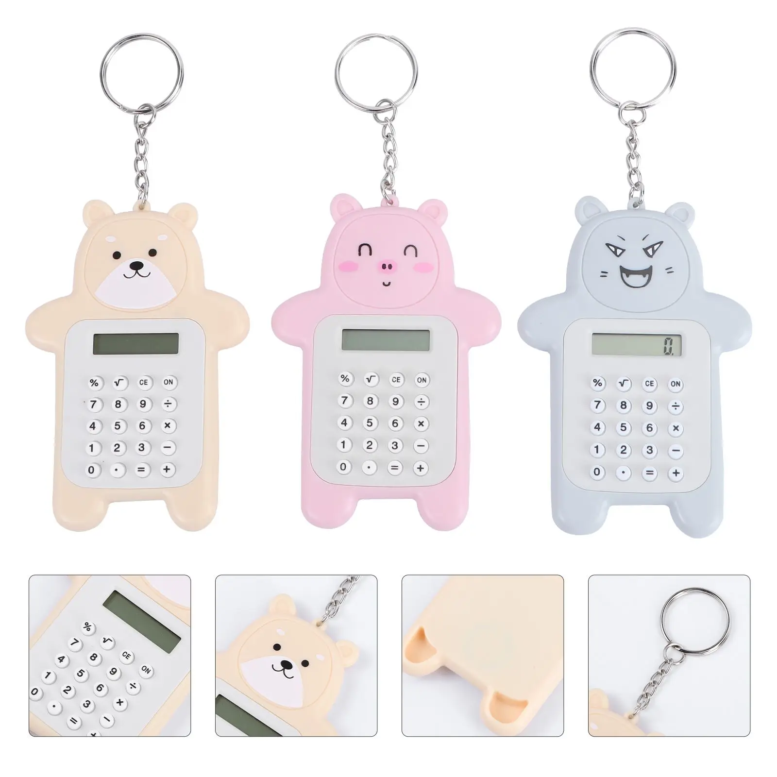 Калькулятор с мультяшным медведем, 3 шт., милый крошечный брелок, украшения, мини-школьницы, пластиковые пуговицы, очаровательные компактные подарки