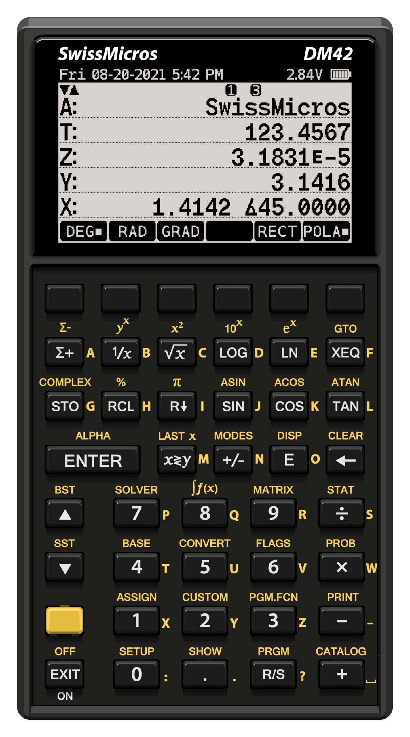 Калькулятор SwissMicros DM42 RPN - Розширений науковий калькулятор - Програмований калькулятор зворотної польської нотації з дисплеєм високої роздільної здатності та Me