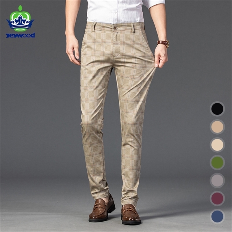 Men's Pants 7 Color Classic Plaid Casual Luxury Spring Summer Fashion Business Cotton Stretch Straight Trousers Male 220826, Black