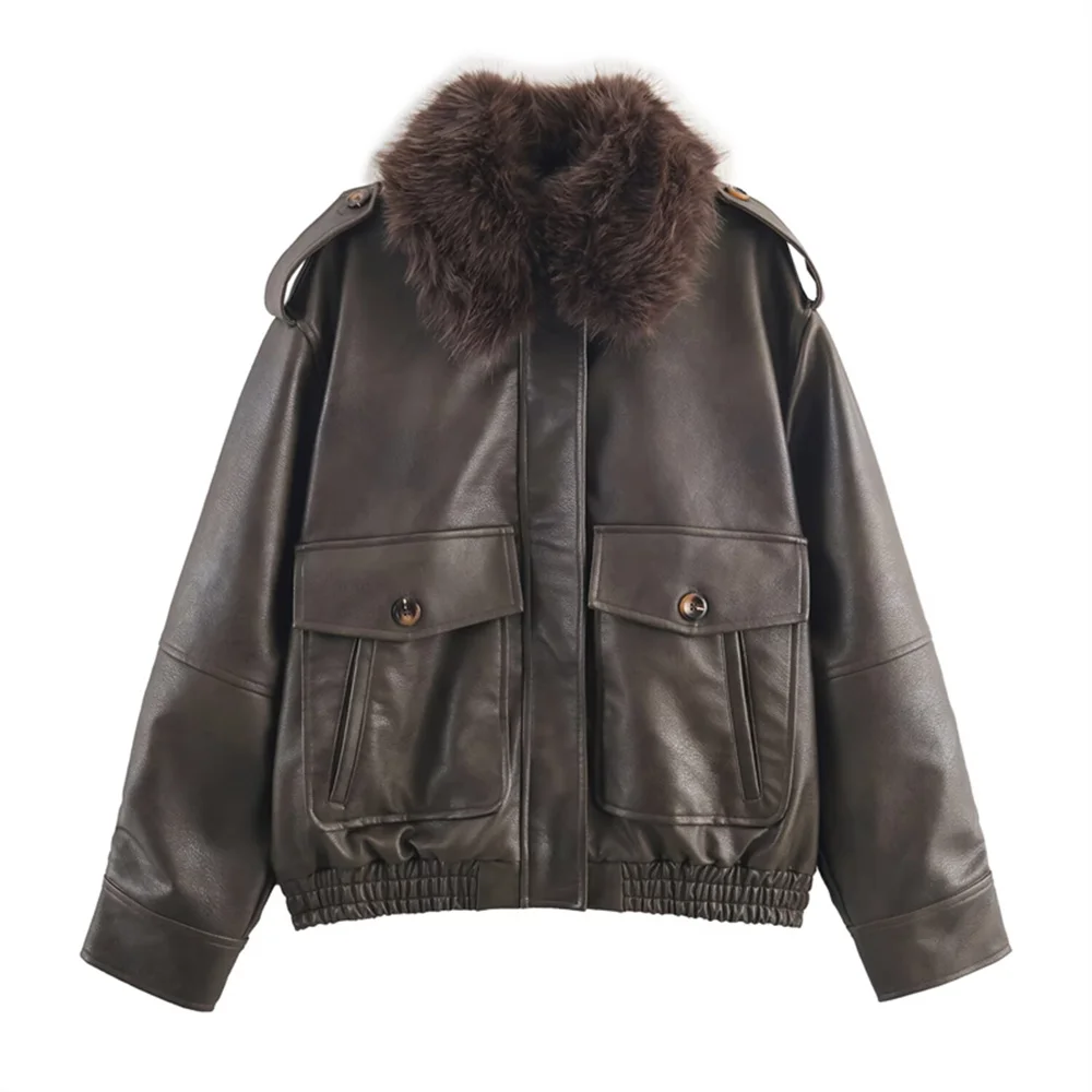 Осенне-зимняя новая женская повседневная универсальная куртка с лацканами и длинными рукавами из замши со съемным меховым воротником, куртка