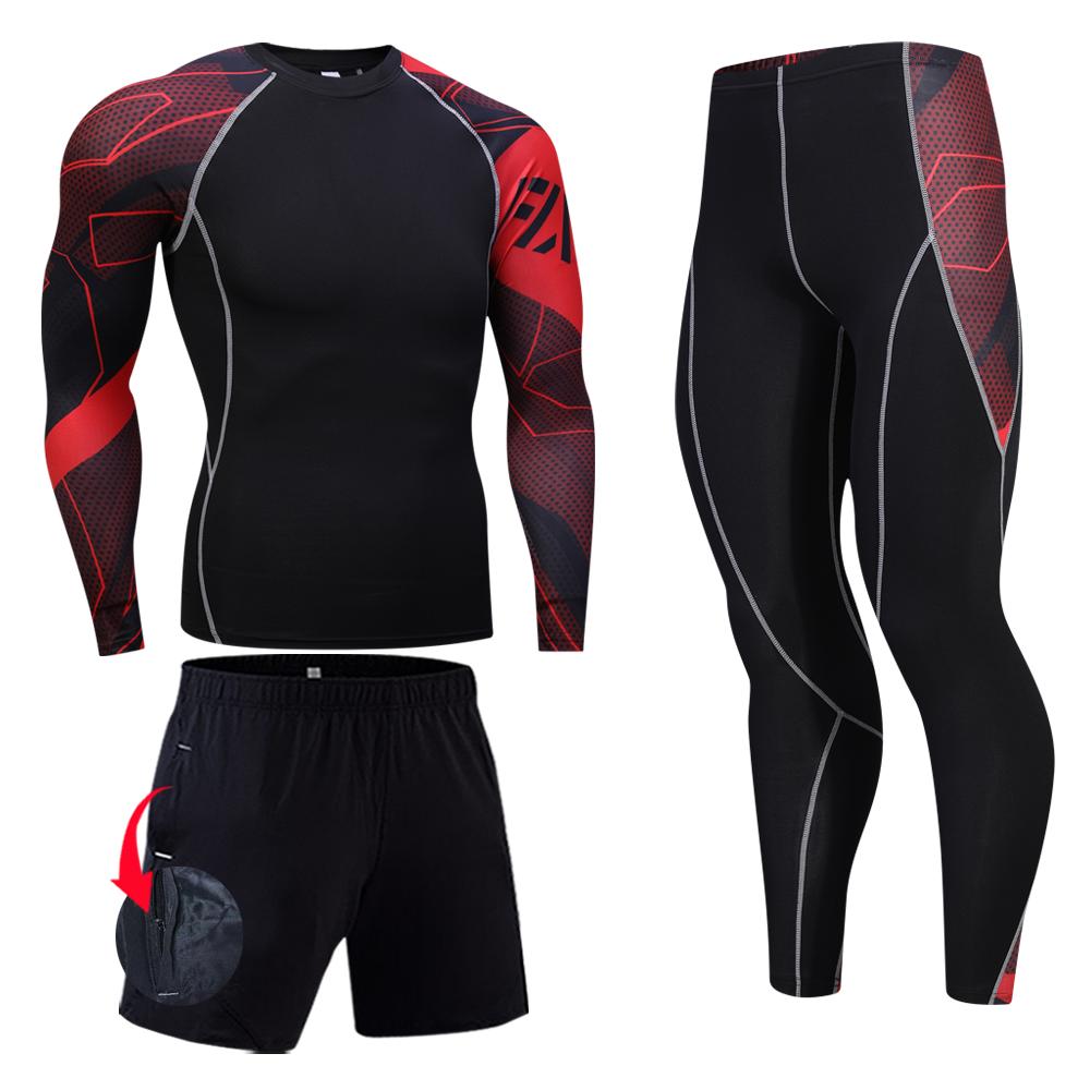 Камуфляжная мужская зимняя одежда, комплект спортивного термобелья, колготки из плотной кожи, мужские термобелье, спортивный комплект из 3 предметов L красный