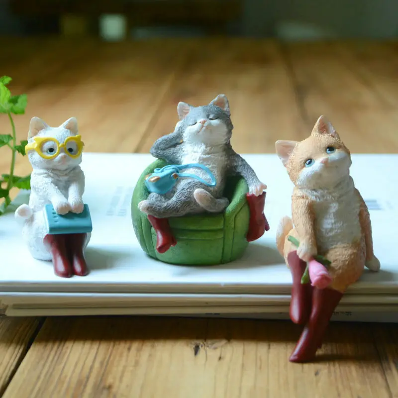 Мультяшные полимерные Мини фигурки кошек, украшения для гостиной, Настольная статуя, декоративные аксессуары для украшения дома