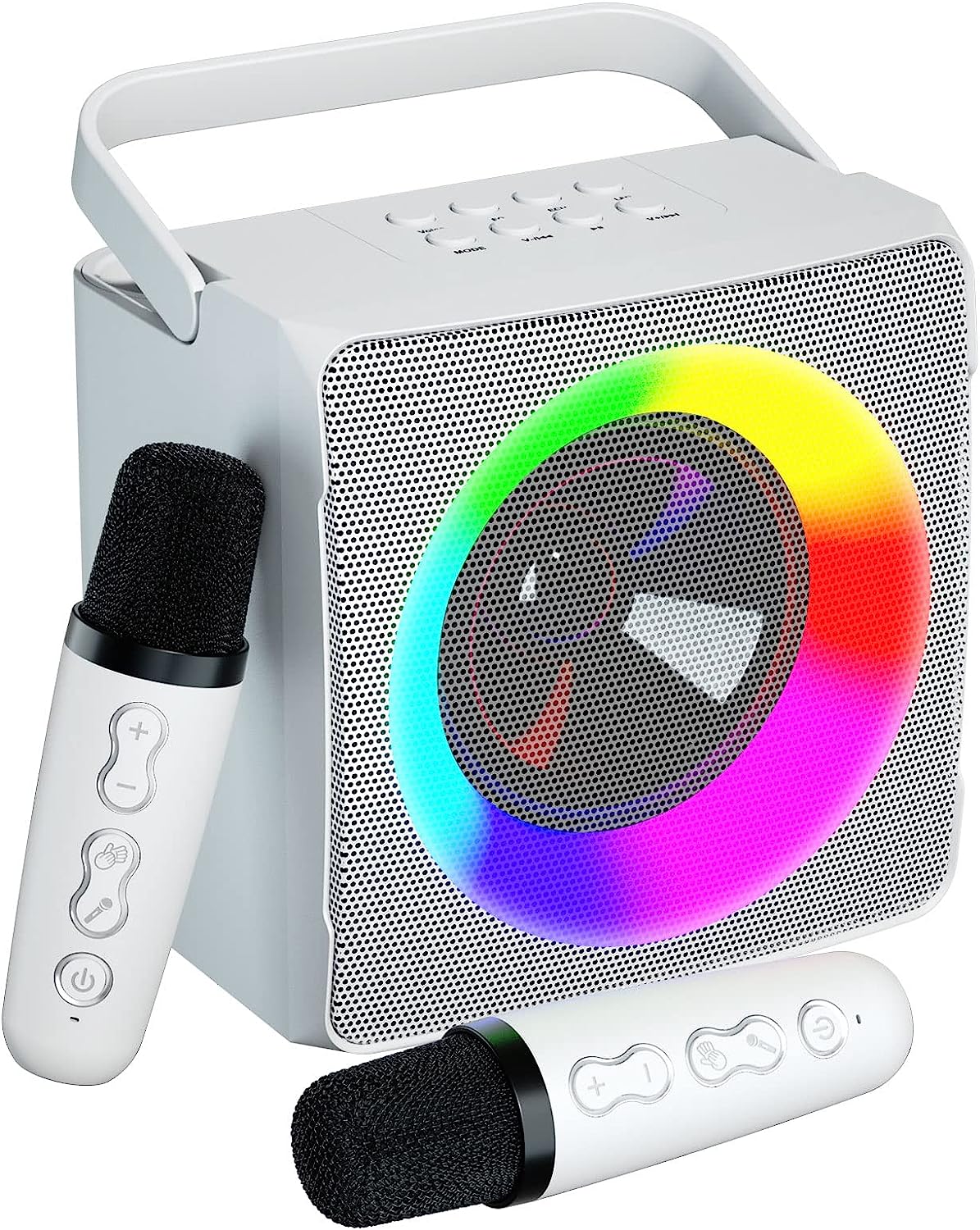 Караоке-машина, портативный динамик Bluetooth, светодиодная лампа для вечеринок с 2 беспроводными микрофонами для караоке — подарок на день рождения, семья, вечеринка, встреча, поддержка USB.