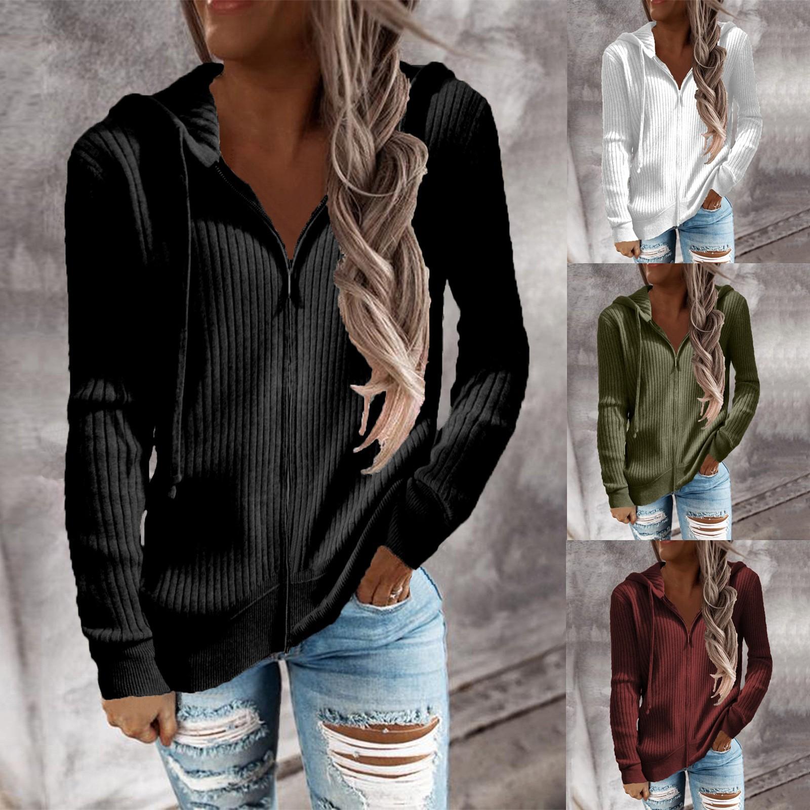 Кардиганы с длинным рукавом и открытой передней частью для женщин, повседневная вязаная верхняя одежда на молнии с капюшоном, толстовка, пальто