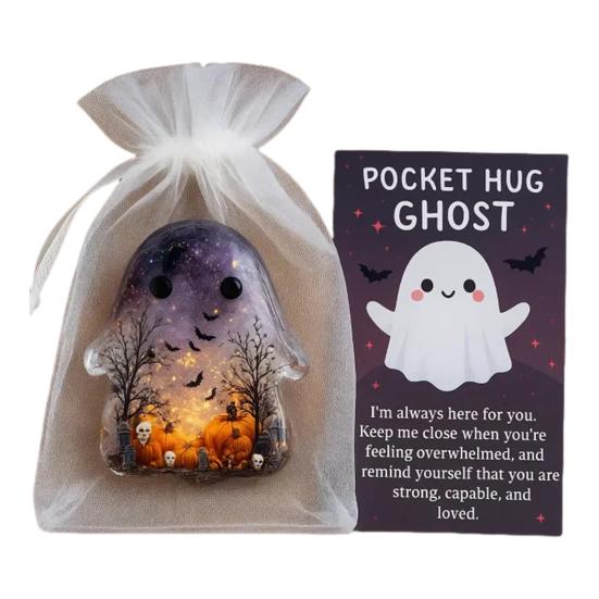 Карманные карточки-призраки Карманные обнимашки Призрак с карточкой с ободрением Милый миниатюрный призрак из смолы Жетон эмоциональной поддержки Вдохновляющие подарки для друзей семьи 1pc A