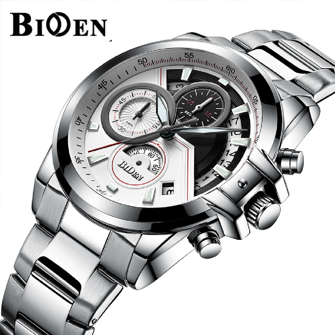 BIDEN New Mens Business Watches Japan Quartz Movt Stainless Steel Chronograph Sports Waterproof Wristwatch Relogio Masculino