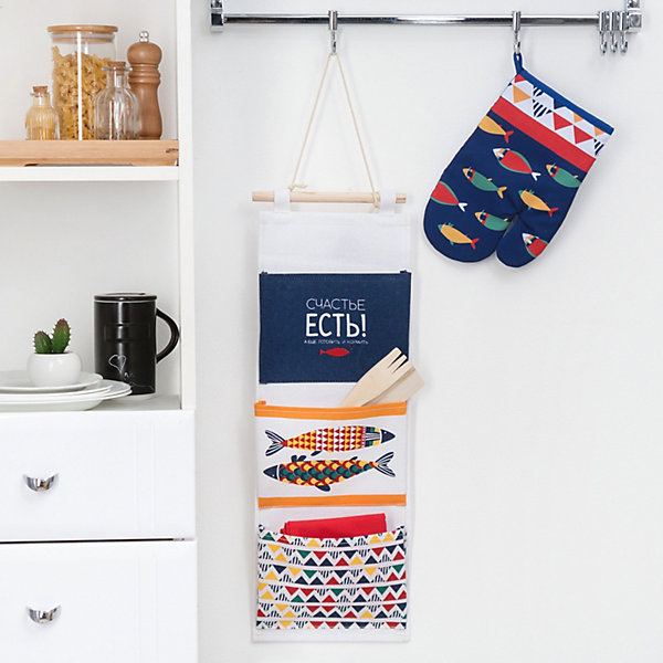 Кармашек для хранения Этель "Счастье есть", 20х56 см, Белый, Кармашек для хранения Этель "Счастье есть", 20х56 см