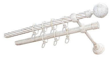 Карниз двойной металлический для штор открытый 25.19мм Белое Золото Калисто крученый (кольца + крючок) 3.0м