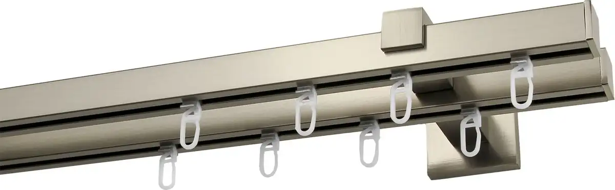 Карниз для штор GARESA "Нора", 2 направляющие, желаемая длина, комплект для штор, легко крепится на стену, выдвижной, колпачок 280 см, цвет edelstahlfarben