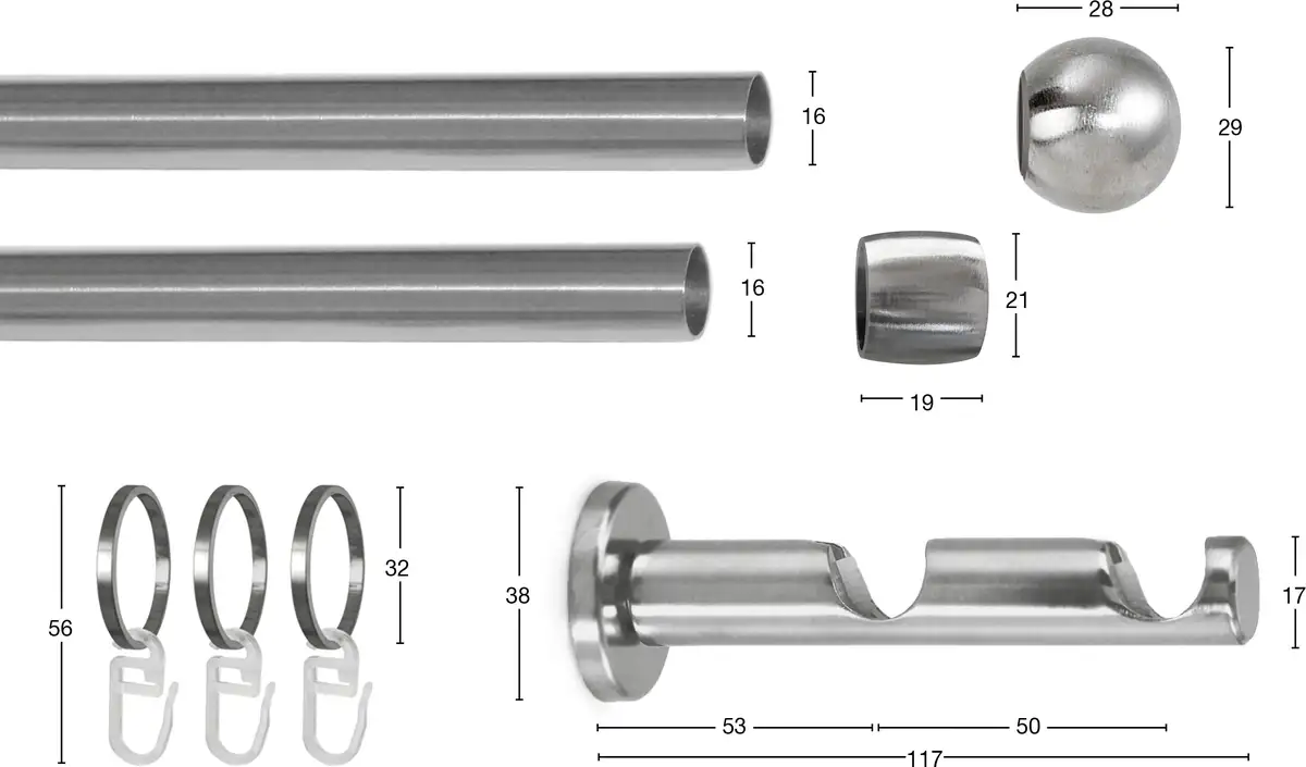 Карниз для штор GARESA "BALL", 2 направляющие, желаемая длина, комплект для штор, выдвижной, шар, имитация нержавеющей стали, с кольцами 380 см, Ø16мм, цвет edelstahlfarben