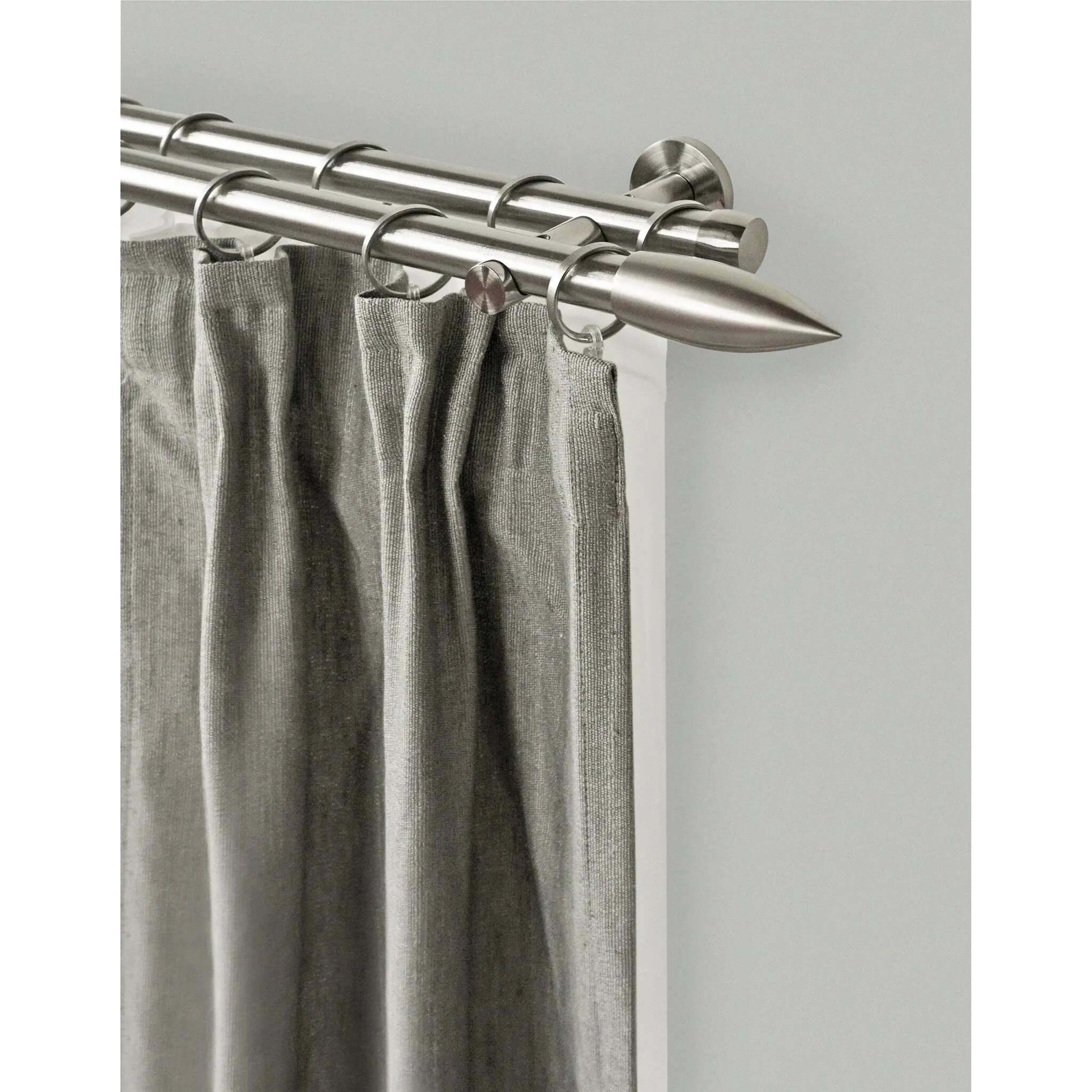 Набор круглых стержней Cartouche от GARESA диаметром 20 мм, доступен в 1- и 2-ствольном исполнении. Очень устойчивая конструкция, поэтому подходит для штор средней тяжести. В комплект поставки входят: 1 металлический стержень диаметром 20 мм (2 стержня для 2-х направляющего варианта), настенные кронштейны, металлические торцевые ручки и кольца, крючки для пластиковых колец. Для версии с двумя стволами в комплект поставки входят металлические торцевые заглушки задней планки. Доступен цвет под нержавеющую сталь. Если требуется больше колец с крючками, чем входит в комплект поставки, закажите их под номером 376636. Если необходимо соединить 2 стержня вместе для получения более длинного размера, соединители стержней можно заказать под номером 16823714 (заказывайте двойной номер для версии с 2 стволами).