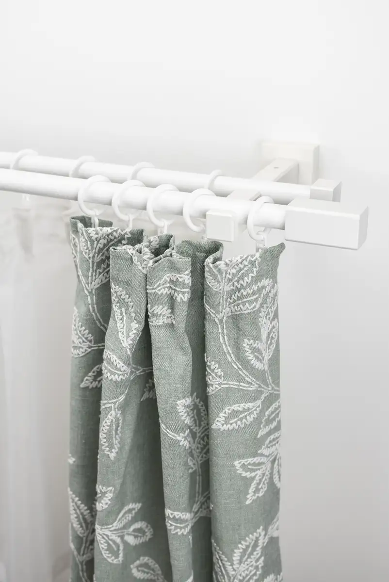 Карниз для штор GARESA "CUBUS", 2 направляющие, желаемая длина, комплект для штор, выдвижной, кнопка с квадратным концом, с кольцами 190 см, белый