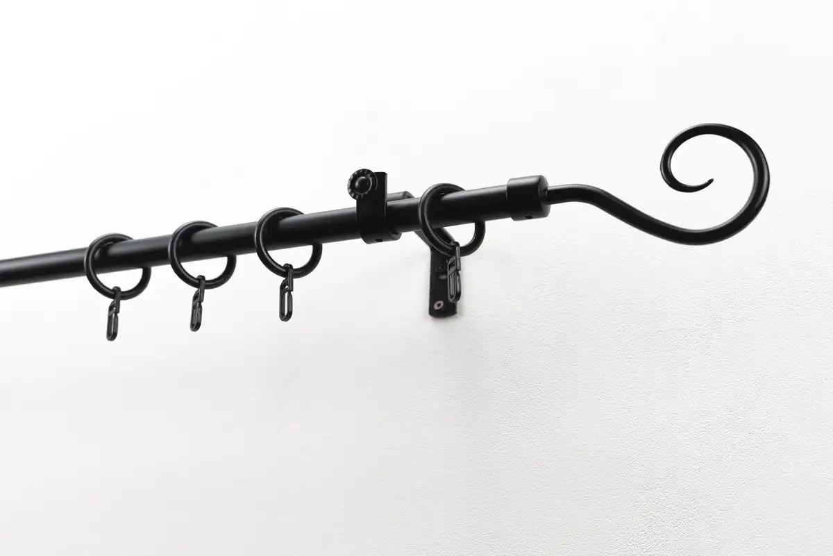 Карниз для штор GARESA "Clara", 1 направляющая, желаемая длина, комплект для штор, с кольцами и крючками, выдвижной, имитация нержавеющей стали 390 см, Ø16мм, черный
