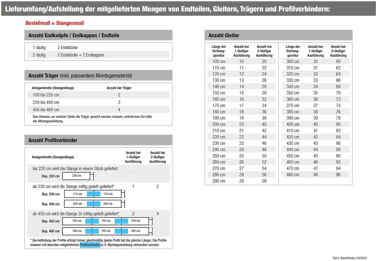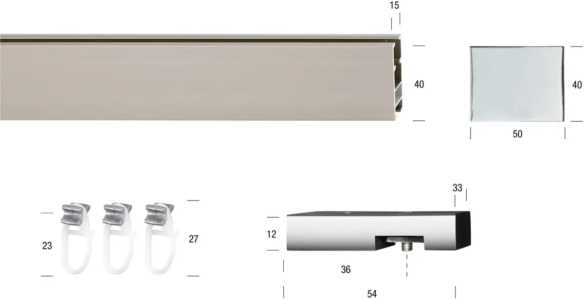 Плоский профиль Flat от «Гареса» имеет размер 40 х 15 мм и подходит для легких и среднетяжелых драпировок. Эта модель доступна в версиях с 1 и 2 направляющими, а также для потолочного или настенного монтажа. В комплект поставки входит: 1 внутренний ходовой профиль (2 шт. на 2 бочки), наконечники и опоры изготовлены из алюминия. Пластиковые планеры. Доступные цвета: никелированный или никелированный/хромированный (никелированный профиль/хромированные опоры и наконечники). Есть много разных концевых частей на выбор! Если требуется больше планеров, чем входит в комплект поставки, соответствующие планеры можно заказать повторно/дополнительно под номером позиции 17502863. Если 2 стержня необходимо соединить друг с другом для достижения более длинного размера, соединитель стержня 12705063 можно заказать дополнительно (закажите двойное количество для 2-ствольной версии).