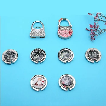 Portable Fashion Table Hook round Folding Handbag hook Crystal Rhinestone decoration Unique Storage Rack