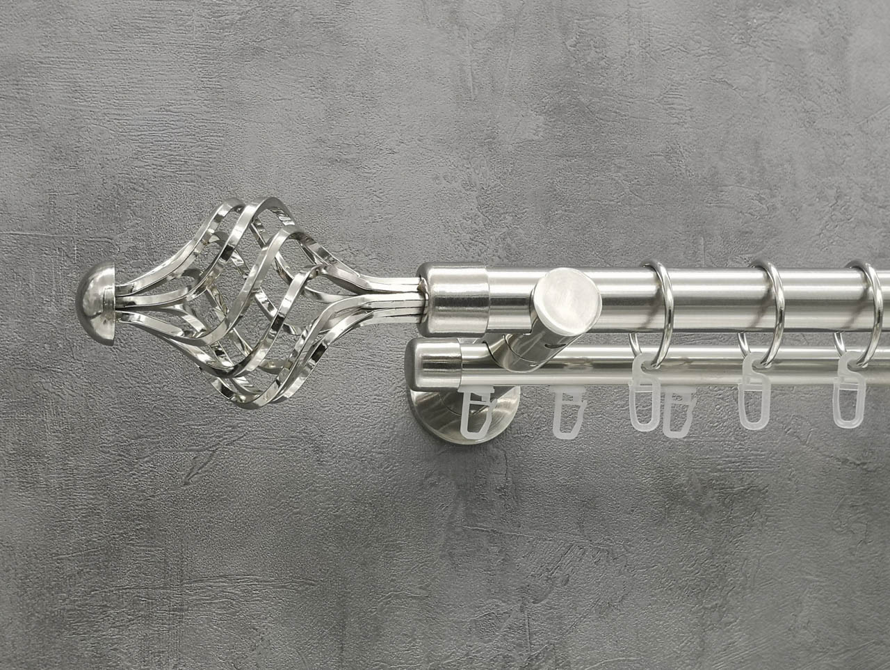 Карниз Quadrum Арезо 160 см двойной Сталь универсальный 25/19 мм гладкая/импрессионная (кольца с крючками)