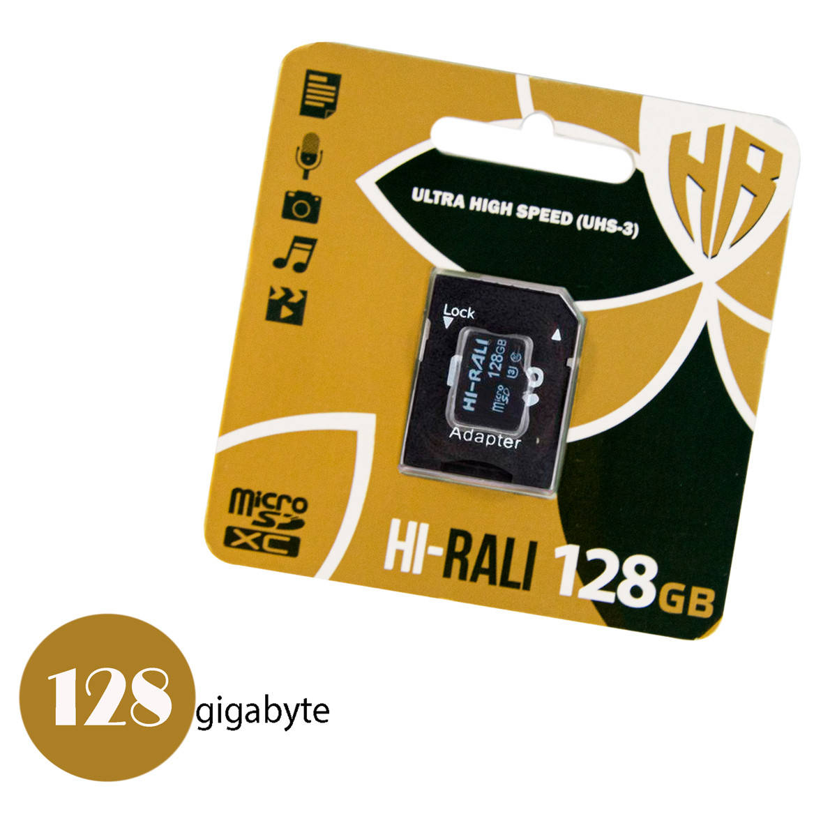 Карта памяти 128 гб с адаптером "Hi-Rali" UHS-3 Сlass 10, micro SDXC память для телефона, фотоапарата (NS)