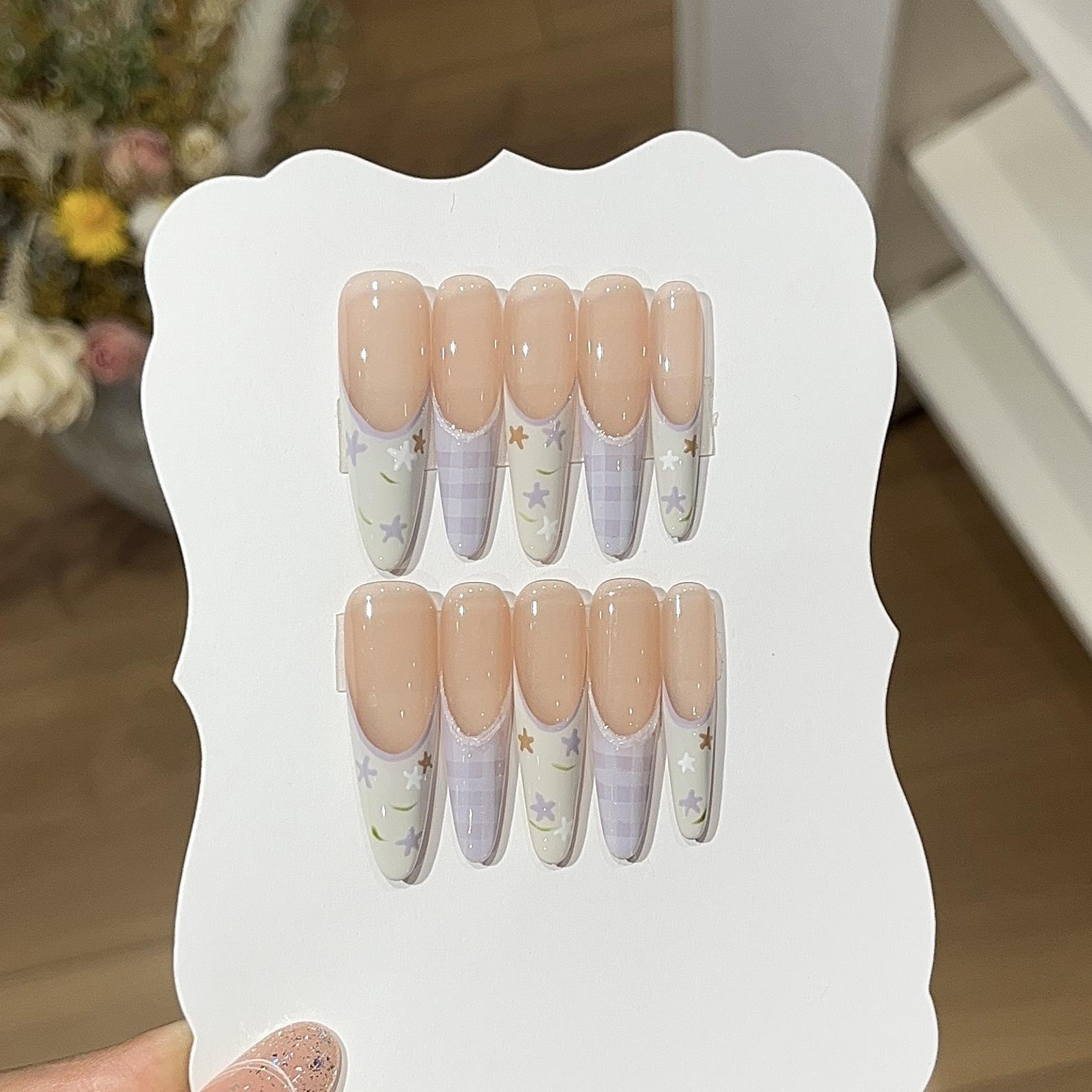 Картина маслом Девушка Атмосфера Лето Крем Стиль Ручная роспись Молоко Фу Маленькая Цветочная Клетчатая Одежда Броня L