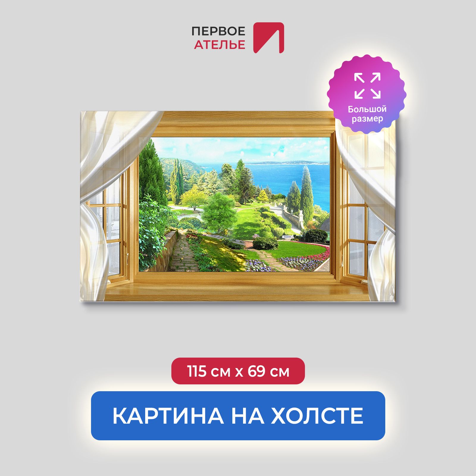 Картина на стену для интерьера ПЕРВОЕ АТЕЛЬЕ "Вид из окна на зеленый парк" 115х69 см, Вид из окна на зеленый парк