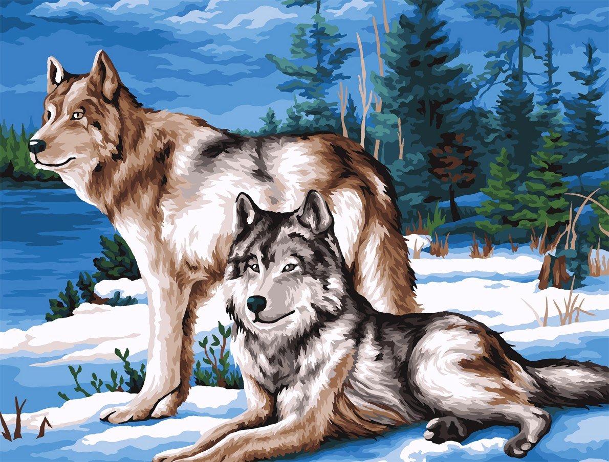 Картина по номерам Три совы Волчья семья КХ4050_53892