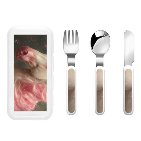 Bingfone Haired White Horse Print Toddler Utensils Kids Silverware 3pcs Safety Stainless Steel Toddler Fork Spoon Knife Set Children Flatware Set