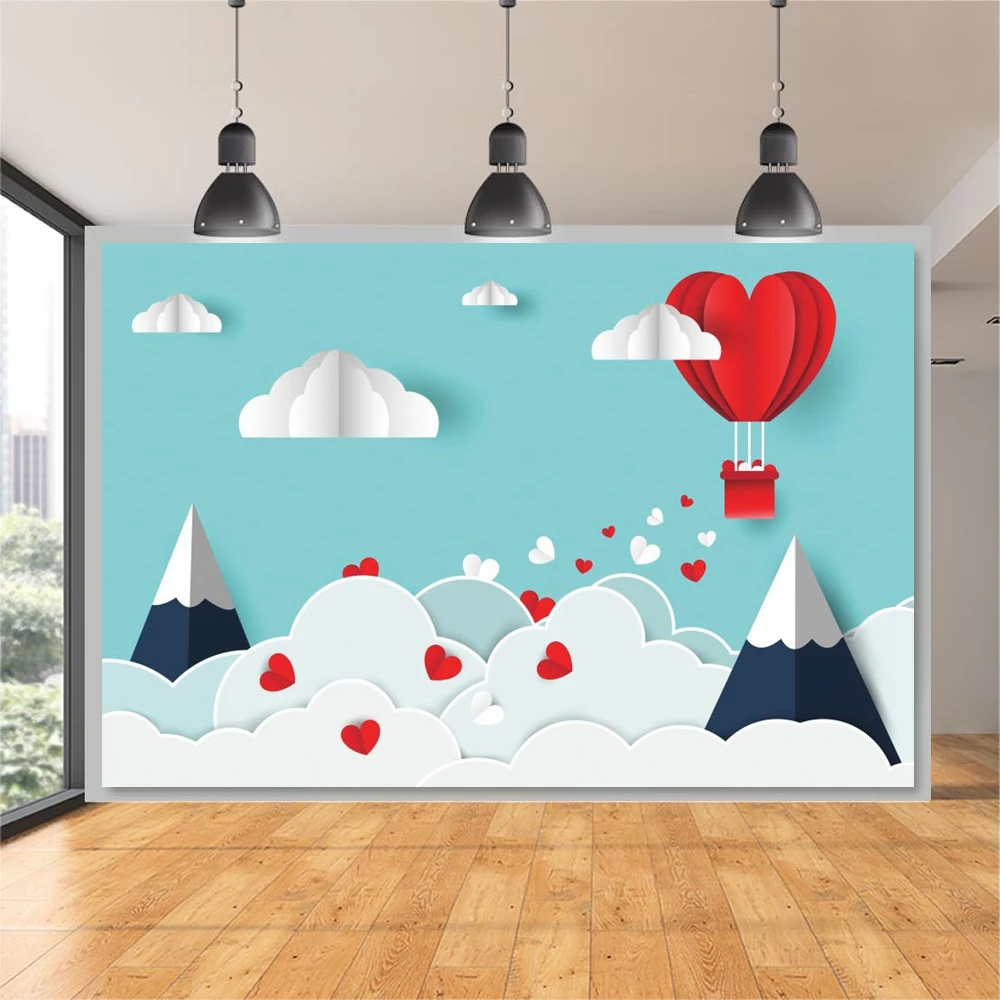 Happy Valentine's Day Background Hot Air Balloon Mountain Cloud Sky Baby Birthday Photography Backdrop For Photo Booth Props