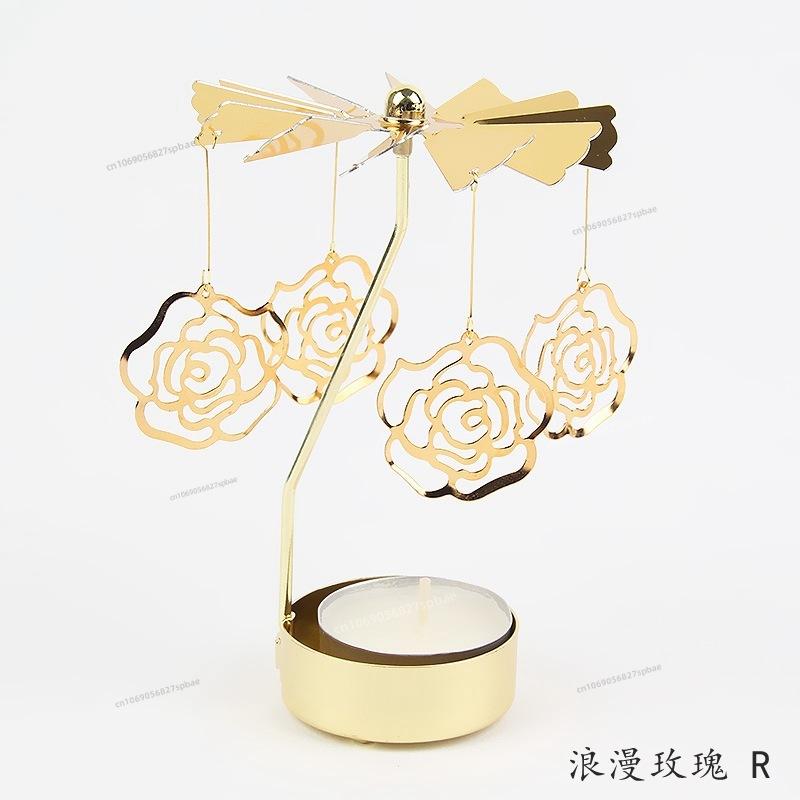 Карусель Золотой Горячий Вращающийся Подсвечник Украшения Металлическая Ветряная Мельница Вращающийся Креативный Ручной Подарок Домашняя Вечеринка Свадебное Украшение