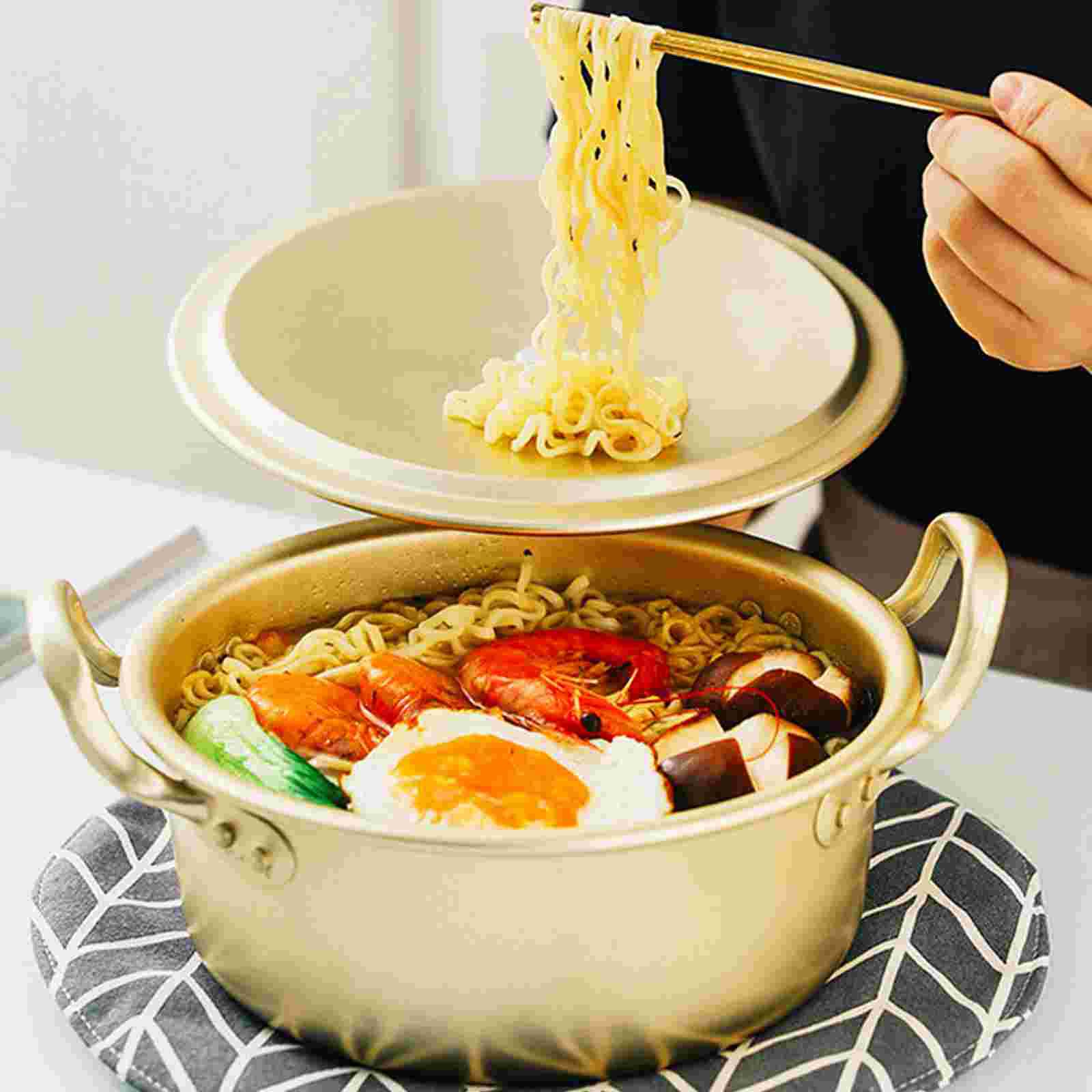 Кастрюля для лапши быстрого приготовления, сковорода для приготовления горячей лапши с двумя ручками, алюминиевая сковорода для корейского рамена золотистый