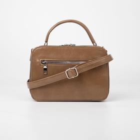 Саквояж, 2 отдела на молнии, наружный карман, длинный ремень, цвет светло-коричневый