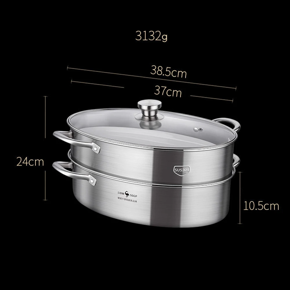 Кастрюля для супа с двойным тушеным паром, большая домашняя антипригарная сковорода из нержавеющей стали 304, кухонная утварь, тушеный горшо...