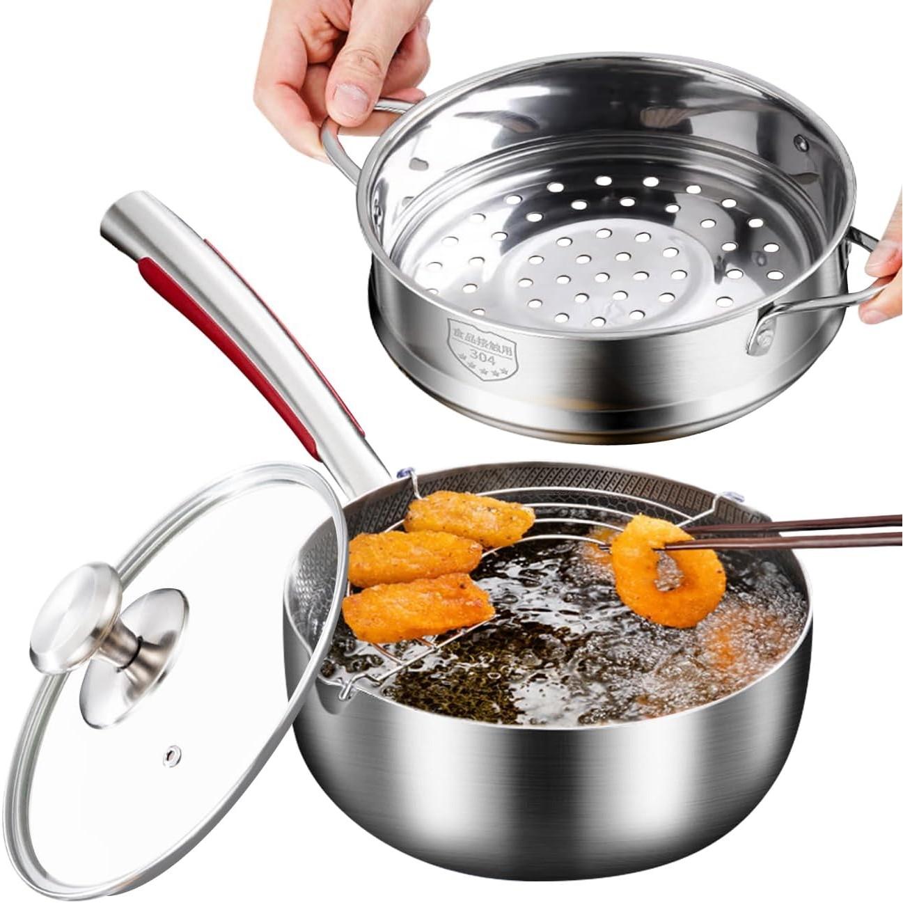 Кастрюля емкостью 2,5 литра с корзиной для пароварки и решеткой для слива масла. Кастрюля из нержавеющей стали 18/10 с антипригарным покрытием.