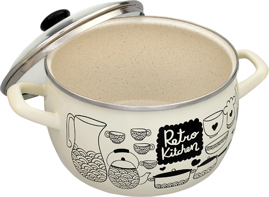 Кастрюля METROT Ретро, стеклянная крышка, сфера, эмалированная сталь, стеклянная крышка, 5.7л Арт. 350015