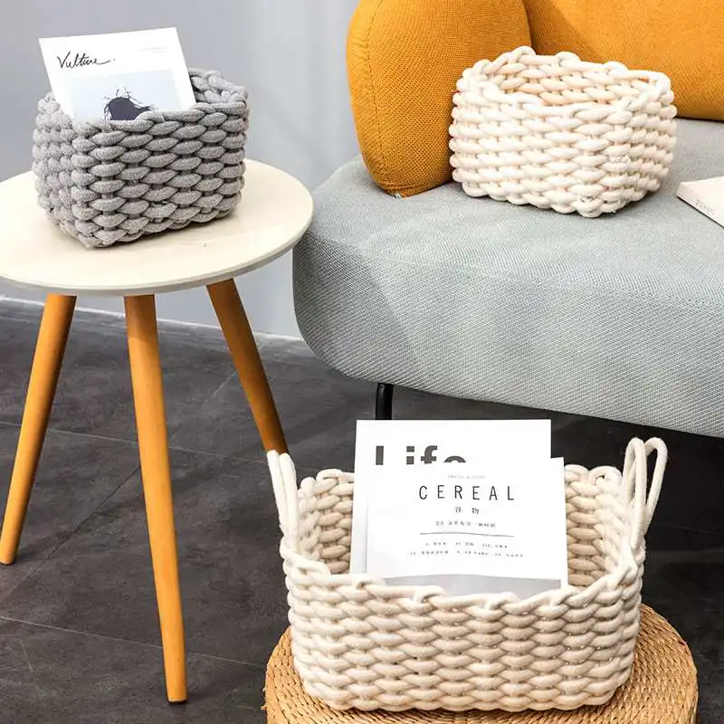 Качественная ручная работа, Скандинавская Толстая хлопковая веревка, практичная всякая косметика, украшение для дома и офиса, Настольный О...