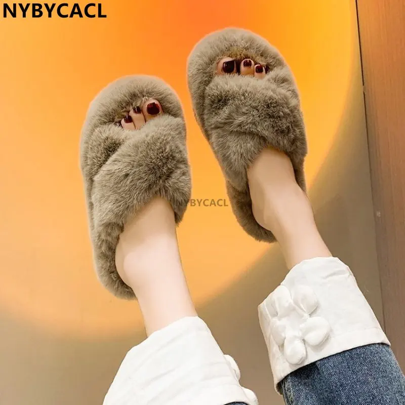 Качественные Роскошные теплые домашние женские туфли для дочери на толстой подошве, плюшевые домашние хлопковые пушистые меховые тапочки ...