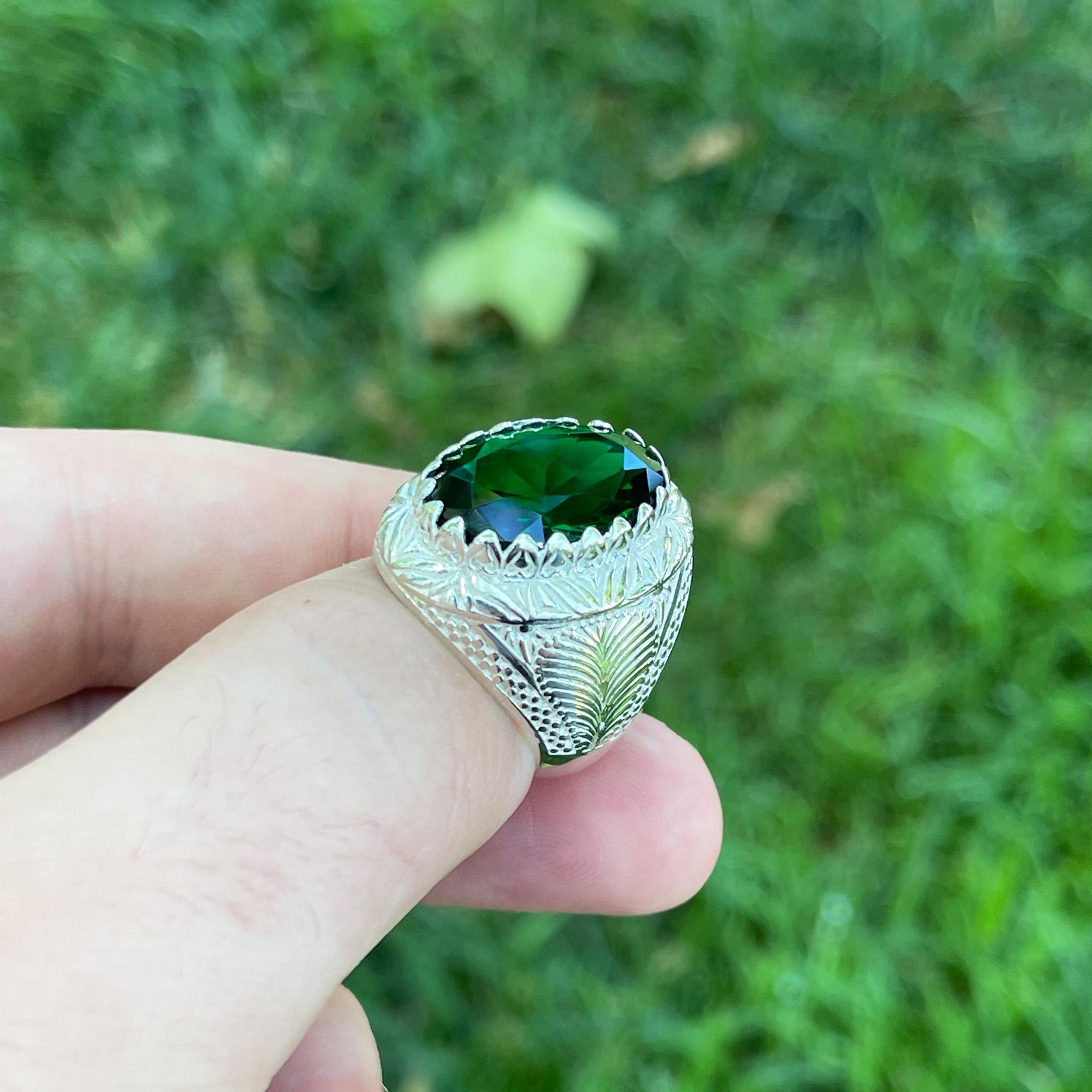 Качественные ювелирные изделия турецких ремесленников с изумрудным камнем — мужское кольцо из стерлингового серебра 925 пробы, идеальная идея подарка на дни рождения, юбилеи или День отца 7 серебряный