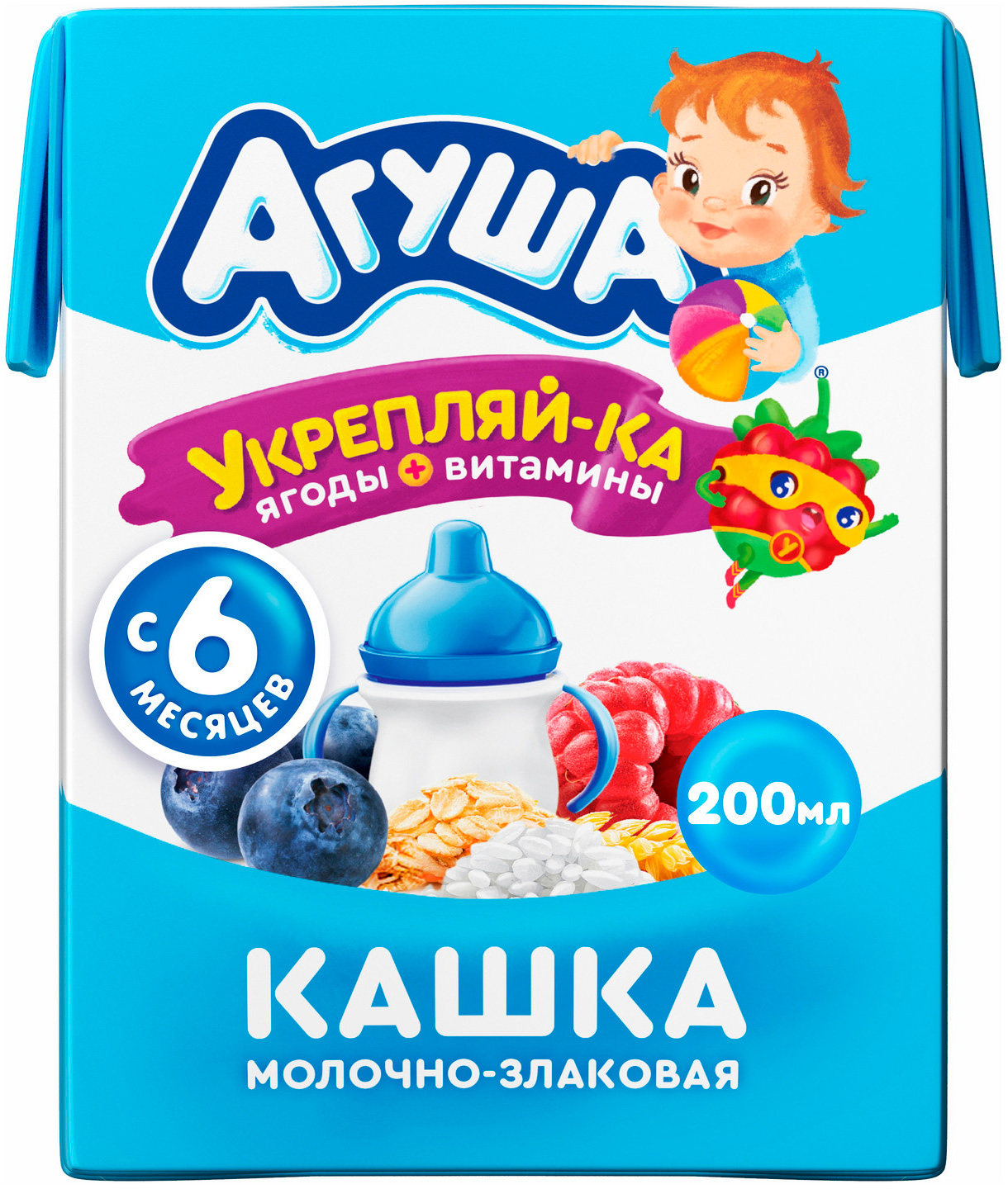 Каша Агуша Укрепляйка молочная злаки черника-малина-яблоко с 6месяцев