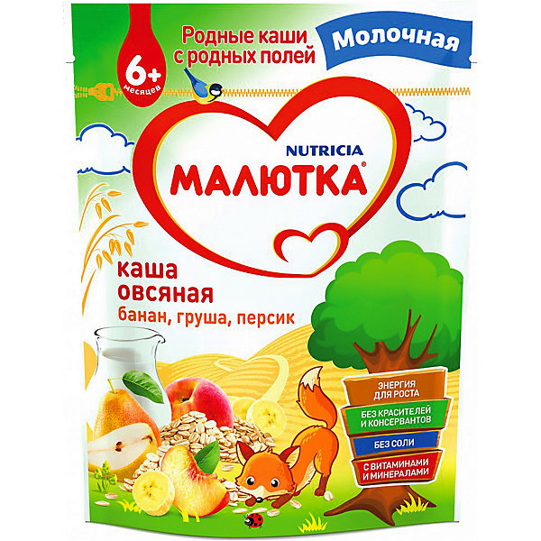Каша Малютка молочная овсяная с фруктами, с 6 мес